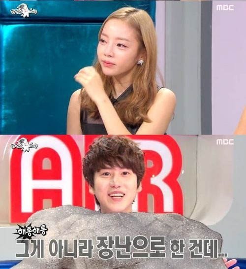 이날 구하라는 MC 규현이 열애설 관련 짓궂은 질문을 하자 물병을 던지고 눈물을 흘려 좌중을 놀라게 했다. 뒤이어 강지영도 애교를 보여 달라는 MC들의 요청에 애교가 없다면서 갑자기 눈물을 쏟았다.