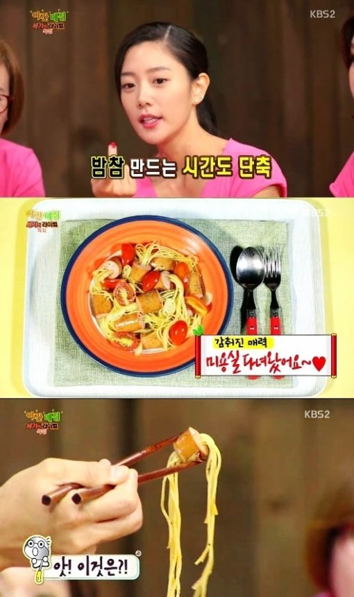 지난 5일 방송된 KBS 2TV ‘해피투게더3’의 ‘야간매점’ 코너에서 클라라는 자신만의 야식 메뉴로 ‘미용실 다녀왔어요’라는 이름의 소시지 파스타를 선보였다.