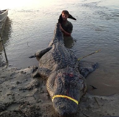 영국 데일리메일은 3일(현지시각) 미국 미시시피주 빅스버그에서 트럭운전사인 더스틴 복먼 형제가 2시간의 사투 끝에 길이 4.1m, 무게 330kg에 달하는 괴물 악어를 잡았다고 전했다.