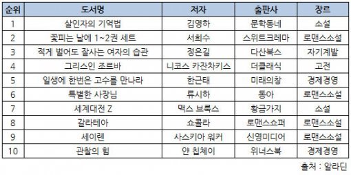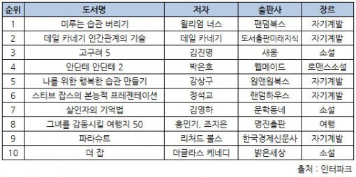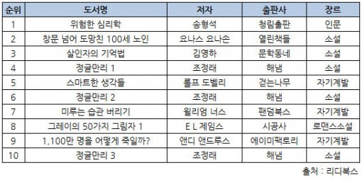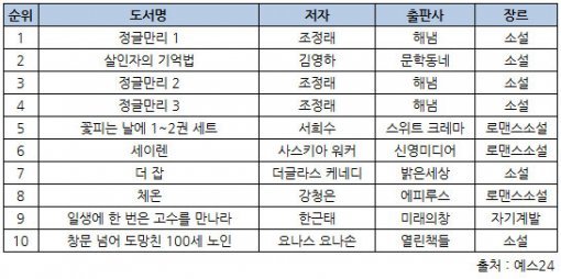 선선한 가을을 맞아 소설 장르가 강세를 보이고 있다. 김진명의 ‘고구려 5’, 김영하의 ‘살인자의 기억법’, 조정래의 ‘정글만리’ 등 국내 인기 작가들의 신작 소설이 베스트셀러 차트에 올랐다.