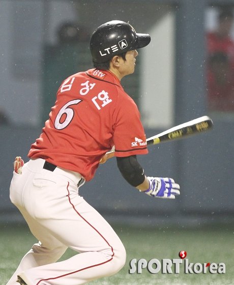 SK 김성현이 10일 오후 군산 월명야구장에서 열린 ‘2013 한국야쿠르트 세븐 프로야구’ KIA 타이거즈와 SK 와이번스와의 경기, 4회초 1사 2루에서 1타점 역전 2루타를 치고 있다.