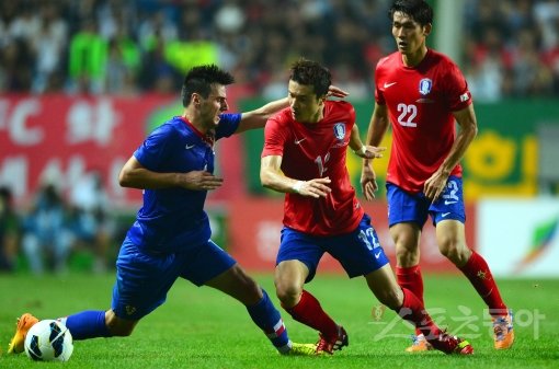 홍명보 감독이 이끄는 축구국가대표팀이 10일 저녁 전주월드컵경기장에서 크로아티아와 평가전을 가졌다. 박종우가 크로아티아 니콜라 칼리니치의 공격을 저지하고 있다.