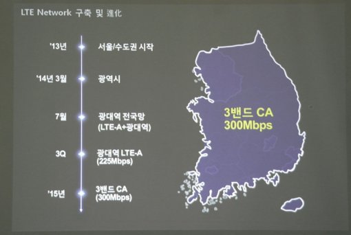 LG유플러스는 올해 수도권에 광대역 LTE망 구축을 시작한다. 2014년 3월에는 광대역 LTE망을 광역시로 확장하고, 7월에는 전국망을 완성할 계획이다. 광대역 LTE망이 구축되면 업로드 속도는 최대 50Mbps로 빨라진다. LG유플러스에 따르면, 타사의 경우 이번에 확보한 주파수 대역 중 사용할 수 없는 대역이 섞여 있어, 광대역 LTE망 구축을 완료하더라도 업로드 속도는 기존 LTE 속도인 25Mbps 이상으로 빨라지지 않는다.