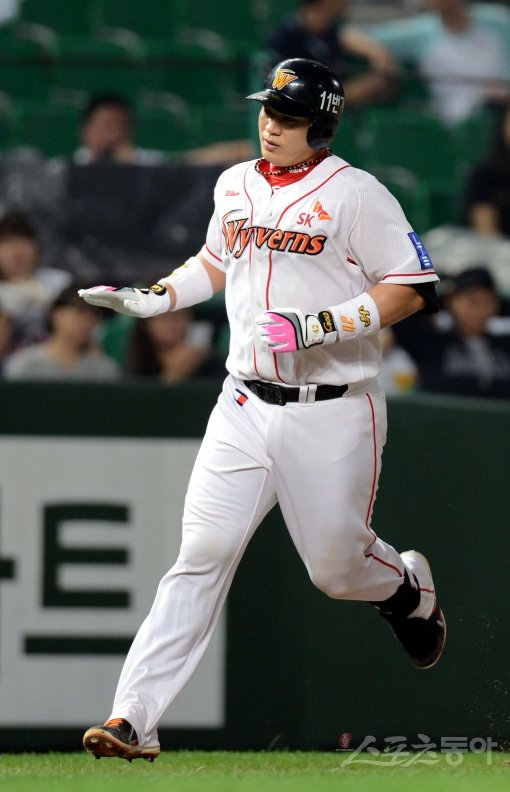 12일 오후 인천 문학야구장에서 ‘2013 한국야쿠르트 세븐 프로야구’ SK 와이번스와 두산 베어스의 경기가 열렸다. 2회말 2사 1루에서 SK 정상호가 두산 노경은을 상대로 좌월 투런홈런을 쏘아올린 뒤 그라운드를 돌고 있다.