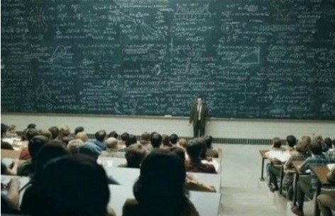 흥미로운 건 칠판의 글. 강의실 앞 칠판에는 수학 공식이 빼곡히 적혀 있다. 엄청난 공식에 ‘무서운 수학 시간’이라 부를 만하다.