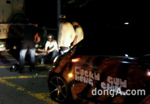 노홍철이 16일 오후 9시46분경 서울 성동구 금호터널에서 자신의 차 일명 ‘홍카’를 운전하던 중 뒤따라오던 오토바이와 추돌했다.