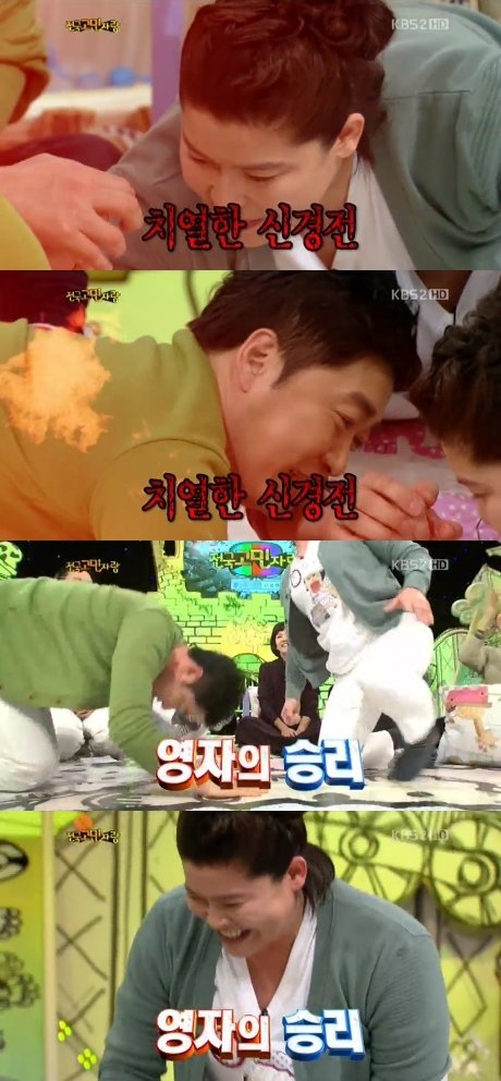 이영자는 지난 2012년 3월 ‘안녕하세요’에서 정찬우와 팔씨름 대결을 펼치기도 했다.
