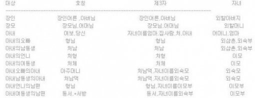 추석이 다가오면서 '처가 호칭과 가족 호칭법'에 누리꾼들의 관심을 쏠리고 있다.