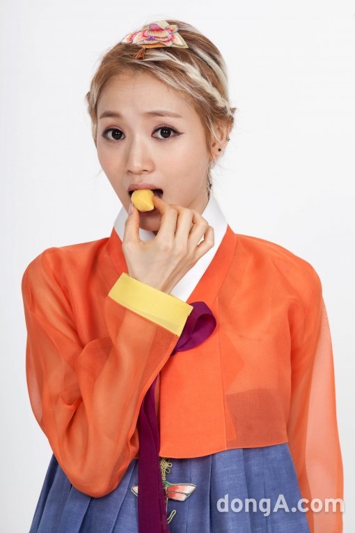 걸그룹 레이디스 코드(LADIES' CODE 리세 소정 애슐리 은비 주니)가 민족 고유의 명절 추석을 맞아 한복을 입고 인터뷰에 나섰다. 멤버 소정이 인터뷰에 앞서 포즈를 취하고 있다.