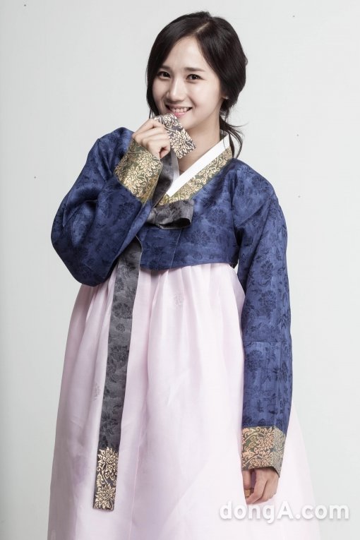 걸그룹 헬로비너스가 민족 고유의 명절 추석을 맞아 한복을 입고 인터뷰에 나섰다. 멤버 유아라가 인터뷰에 앞서 포즈를 취하고 있다