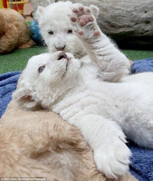 공개된 ‘백사자 형제 탄생’ 사진에는 태어난 지 갓 5주 정도 지난 귀여운 아기 백사자들의 모습이 담겨 있다. 이들은 마치 유명 애니메이션 ‘밀림의 왕자 레오’를 실제로 보는 듯한 모습이어서 눈길을 끈다.