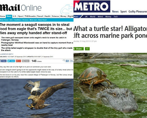 독수리 공격하는 갈매기 - 악어 등 올라탄 거북이…‘살벌하네’