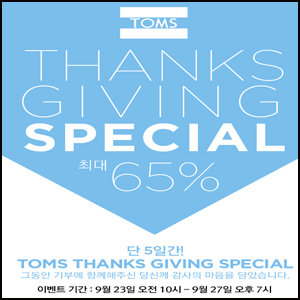 슈즈브랜드 탐스가 23일부터 27일까지 5일간 최고 65% 이상 할인 행사를 한다는 소식이 알려지면서 이벤트 첫 날부터 홈페이지가 마비됐다.