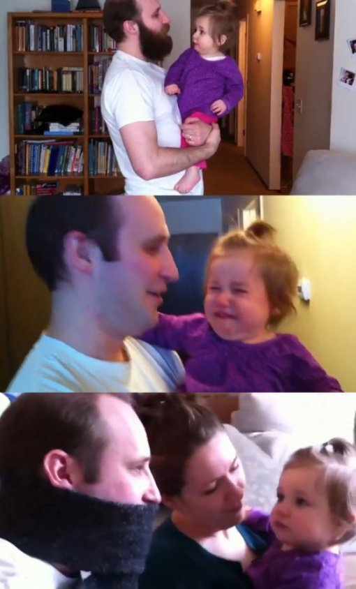 얼굴의 반을 덥수룩한 수염을 가진 아빠는 딸을 안고 행복한 웃음을 짓고 있다. 그러나 이 아빠가 말끔하게 면도를 한 뒤 딸을 다시 안자 아기는 울음을 터뜨리고 말았다.