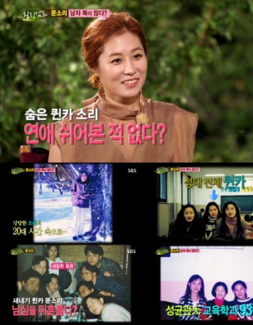 문소리는 “신입생 때 나도 모르게 누군가와 사귄다고 소문이 났다”며 “한 맥주집에서 그 소문의 남자를 만났다. 그 남자가 나에게 친구들의 장난이었다고 미안하다며 공연 티켓 2장을 줘 친해진 적도 있었다”고 덧붙였다.