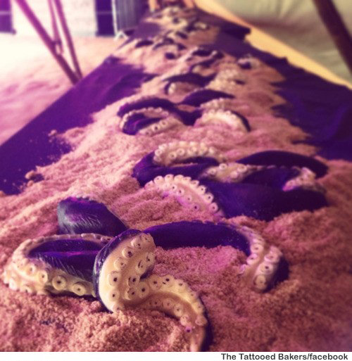 이 케이크는 마치 크라켄이 모래 아래에서 수많은 발들을 내밀고 있는 듯한 형상을 하고 있다.