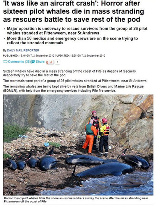 떠내려 온 고래 중 일부는 인근 구조대원들의 도움으로 바다로 되돌아갔다. 전문가들은 떼죽음 현상에 대한 원인으로 “천적에게 쫓기다 해안까지 밀려왔거나 바다 오염, 먹이 고갈 때문이다”라고 밝혔다.