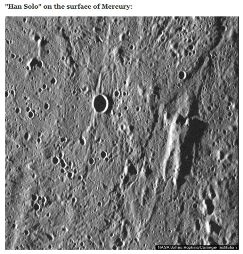 지난 20일(현지시간) 미국 허핑턴포스트 등 외신들은 수성에서 사람과 닮은 모양의 특이 지형이 발견됐다고 보도했다.