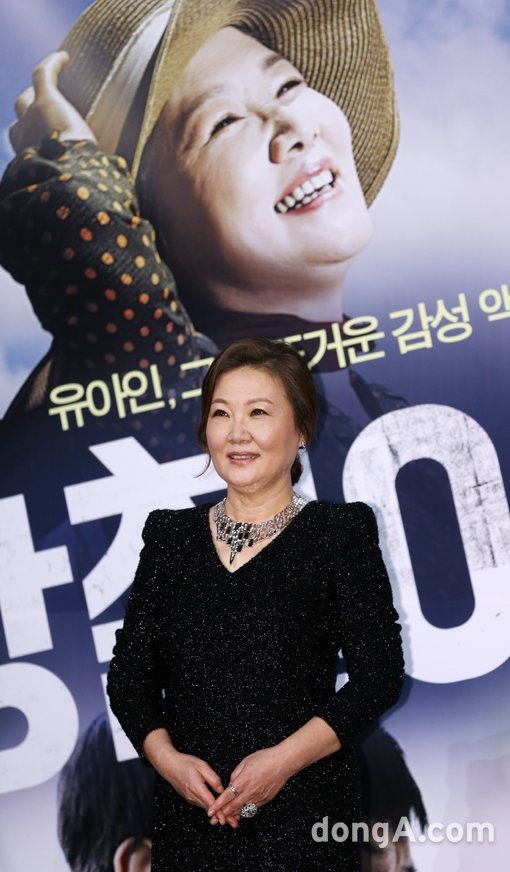 배우 김해숙이 25일 오후 서울 왕십리 CGV에서 열린 영화 ‘깡철이’ 언론배급시사회에서 포토타임을 하고 있다. 동명소설을 원작으로. 한 영화 ‘깡철이’는 치매를 앓고 있는 엄마와 남편처럼 든든하게 지내는 아들 깡철이의 이야기다. 영화는 내달 2일 개봉.