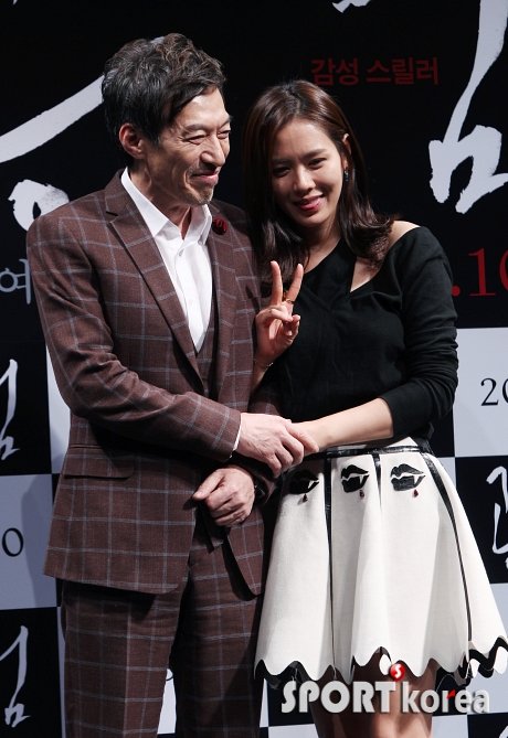 극중 부녀지간으로 출연하는 배우 김갑수, 손예진(오른쪽)이 26일 오후 서울 압구정CGV에서 열린 영화 ‘공범’ 쇼케이스에 참석해 포즈를 취하고 있다.