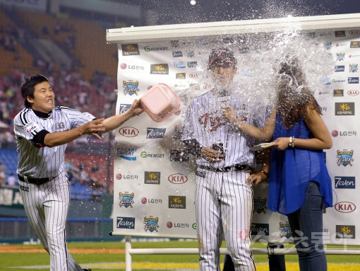 한편 지난 5월 정인영 KBS N 아나운서는 잠실야구장에서 열린 2013 프로야구 LG와 SK의 경기가 끝난 뒤 인터뷰를 하다 LG의 2년차 투수 임찬규에게 물세례를 맞아 화제가 됐었다.