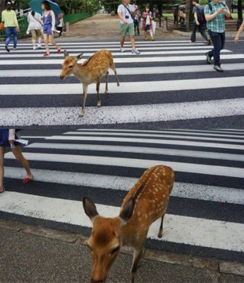 화제의 주인공은 일본 나라 공원에 살고 있는 사슴. 이 사슴은 건널목에 서서 녹색 등이 켜질 때까지 기다리다가, 신호가 바뀌자 걸음을 옮긴다.