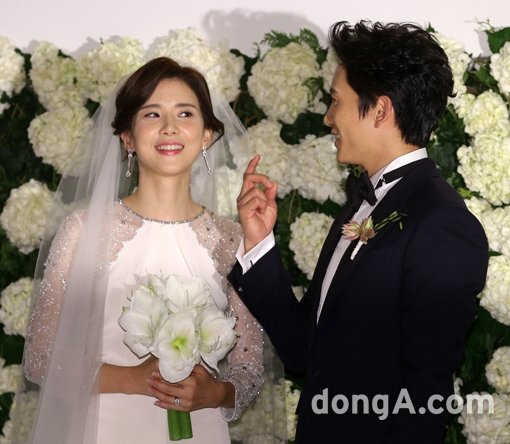 배우 지성과 이보영이 백년가약을 맺는다. 지성과 이보영이 27일 오후 서울 광진구 워커힐 그랜드볼룸에서 결혼식에 앞서 포토타임을 하고 있다.