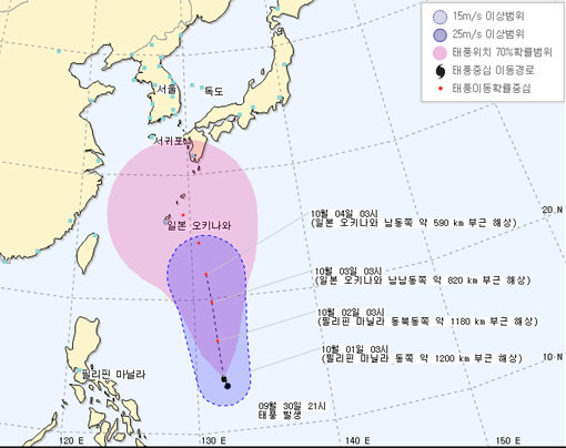 기상청은 “4일까지 태풍이 북상할 것으로 예상되지만 그 이후의 진로는 유동적이다”라며 “오키나와 부근 해상에서의 예측 모델들이 여러 가지로 엇갈리게 나와 아직은 더 지켜봐야 한다”고 밝혔다.