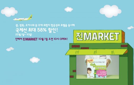 1일 진에어는 “진마켓을 통해 진에어의 국제선 및 국내선 총 13개 전 노선에 대한 최저가 대규모 할인을 실시한다”고 전했다.