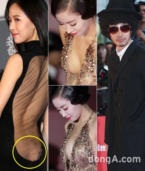 이어 한수아가 파격적인 절개라인이 포인트인 골드 톤의 드레스를 입고 레드카펫을 밟아 보는 이들을 경악케 했다. 움직일 때마다 그녀의 가슴라인이 적나라하게 드러나는 아슬아슬한 상황이 연출되기도 했다. 또 드레스가 힐에 걸려 아찔한 노출사고로 이어질 뻔한 상황도 연출됐다.