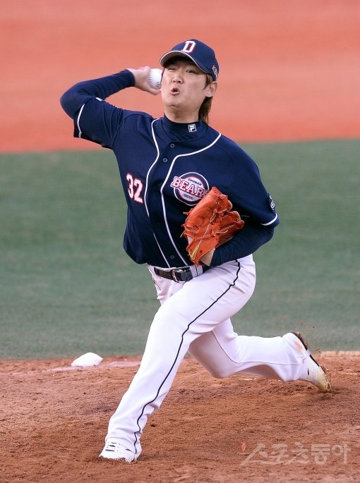 ‘2013 한국야쿠르트 세븐’ 프로야구 준플레이오프 2차전 두산베어스 대 넥센히어로즈 경기가 9일 서울 목동야구장에서 열렸다. 9회말 등판한 두산 김선우가 역투하고 있다.