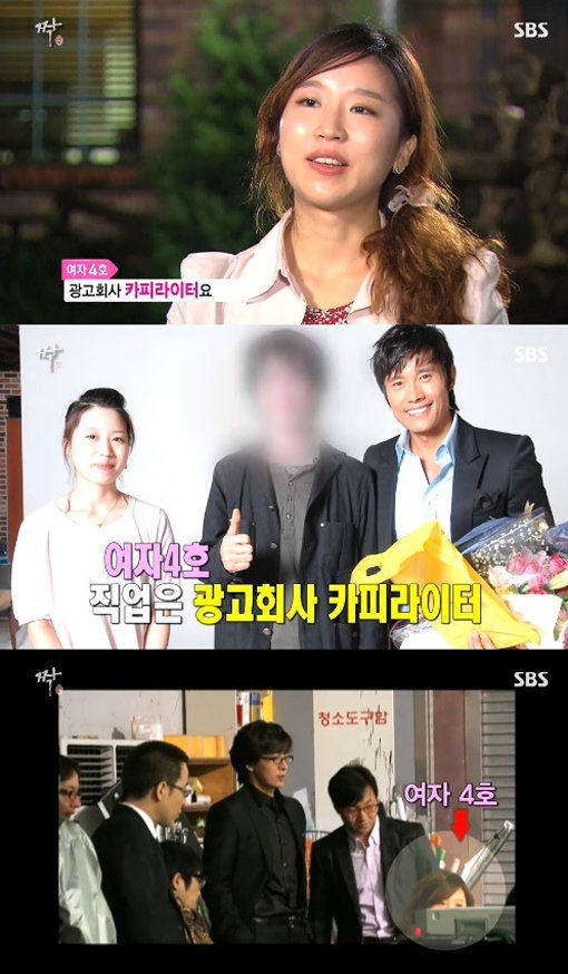 ‘짝’ 여자 4호의 직업은 한 광고회사의 카피라이터. 그는 잘나가는 배우들과 함께 작업했던 것으로 밝혀졌다. 특히 배용준, 이병헌 등 한류스타와 작업도 했다고.