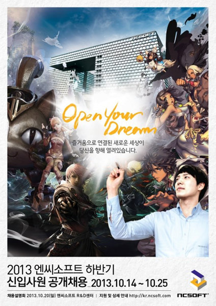 엔씨소프트가 2013년 하반기 신입사원을 공개채용한다.
