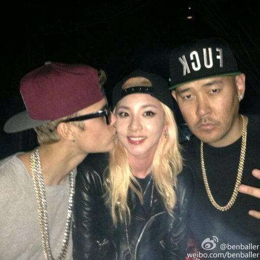 세계적인 팝스타 저스틴 비버가 그룹 2NE1 산다라 박의 볼에 입맞춤을 했다.