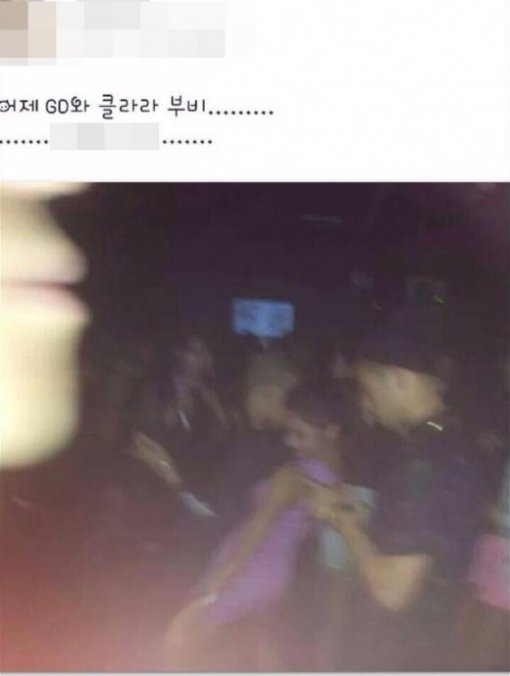 공개된 사진에서 클라라(연보라색 드레스)는 지드래곤(검은색 옷)에게 접근하며 일명 부비부비 댄스를 추는 듯한 모습이다. 이는 11일 ‘클럽 디에이(The A)’에서 열린 가수 박재범의 힙합 레이블 ‘AOMG’ 론칭 파티 직후 열린 팝가수 저스틴 비버의 환영파티인 것으로 알려졌다.
