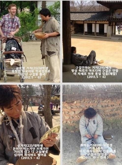 이 ‘민속촌 거지알바’는 민속촌에서 오직 거지 역할만 하면 된다. 다른 아르바이트와 대우는 같지만 아무데서나 노래를 하거나 누워 있어도 된다.