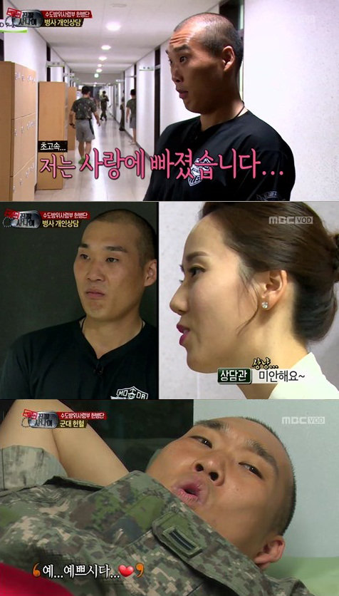 지난 13일 방송된 MBC ‘진짜 사나이-수도방위사령부편’에서 손진영은 미모의 상담사를 보고 3초 만에 사랑에 빠지며 ‘금사빠’의 면모를 보여줬다.