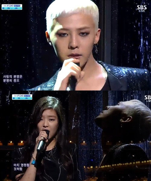 비가 내리는 효과를 연출한 무대와 빗방울이 맺힌 창문 사이로 지드래곤과 김제니가 노래하는 장면이 반씩 편집되며 극적인 분위기를 자아내 보는 이들의 관심을 더하기도 했다.