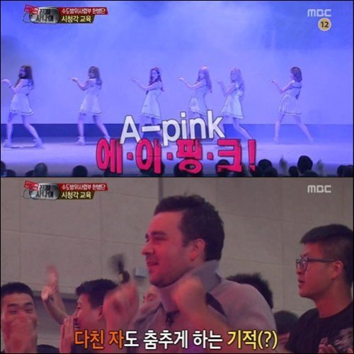 시간이 경과하자 병사들은 지루해하기 시작했다. 이때 에이핑크가 갑자기 무대에 등장해 병사들은 열렬히 환호했다.