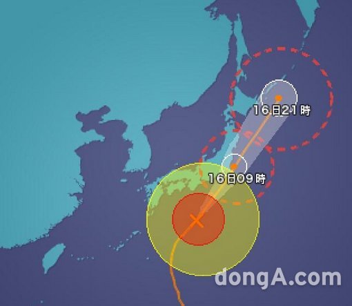 16일 교도통신 등에 따르면, 태풍 위파는 이날 오전 간토 지방에 상륙한다. 시속 60㎞의 빠른 속도로 이동하고 있으며, 중심부의 최대풍속 40㎧, 순간최대풍속 55㎧, 중심기압은 945hPa(헥토파스칼)에 이르는 강한 위력을 지니고 있어 큰 피해가 예상된다.
