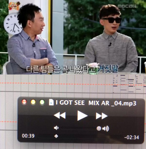 공개된 사진에는 ‘무도 가요제’에서 선보일 곡의 음원이 보인다. 곡 제목은 ‘I got see’라고 쓰여 있으며 발음이 우리말 ‘아가씨’와 비슷해 눈길을 끌었다.