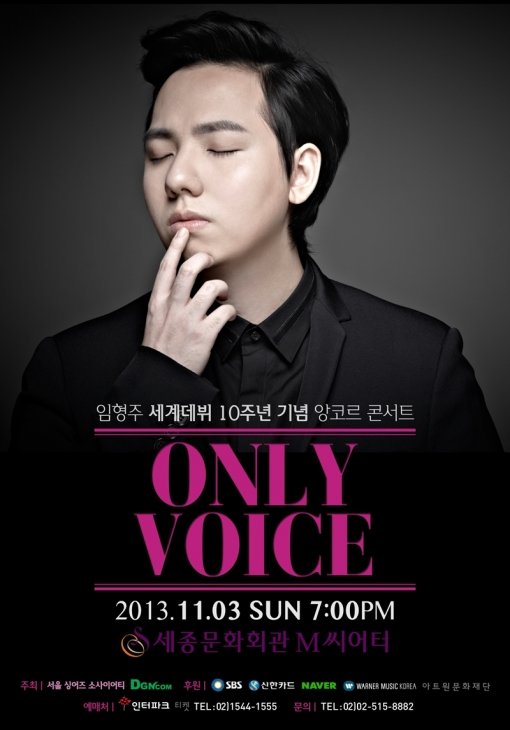 입장권 매진과 언론의 호평 속에 6일 열렸던 ‘임형주 세계데뷔 10주년, 국내데뷔 15주년 기념 콘서트-올 마이 히스토리: 나의 모든 역사’의 성공적인 개최를 기념하기 위해 11월3일오후 7시 서울 세종문화회관 M씨어터에서 앙코르 콘서트 ‘온리 보이스’를 벌인다.