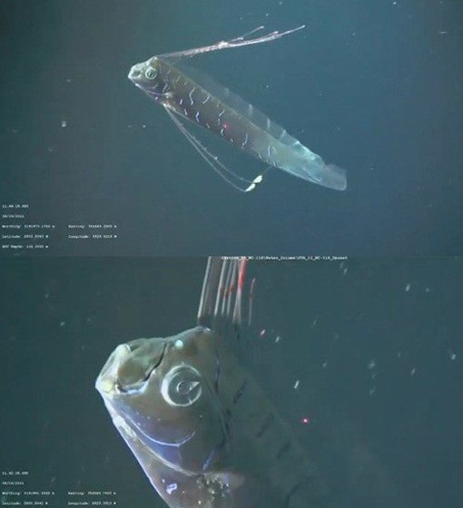 산갈치의 모습을 담은 영상은 무인 심해탐사로봇이 포착한 것으로 공개된 영상에는 길이 5m의 초대형 산갈치가 유영하고 있는 장면이 담겨 있다.