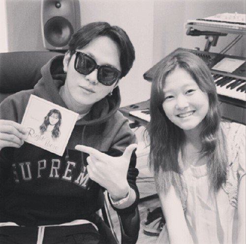이와 함께 공개한 사진 속에는 녹음실에 앉아 다정한 포즈를 취한 용준형 신지훈의 모습이 담겨 있다. 용준형은 신지훈의 데뷔 앨범을 손에 들고 있다.