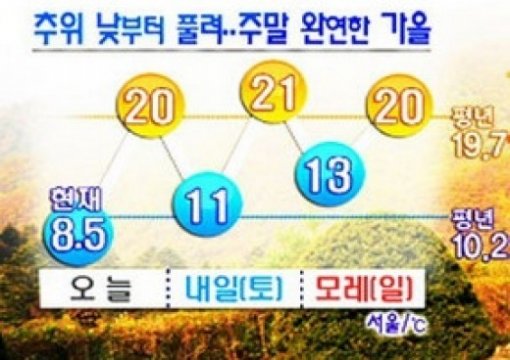 특히 추위가 풀리면서 다가오는 주말에는 예년과 비슷한 온화한 가을 날씨가 이어질 것으로 보인다.