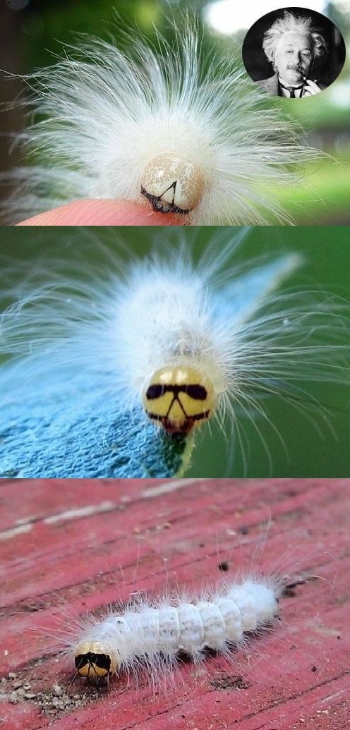 공개된 사진에는 독일의 천재 물리학자 알버트 아인슈타인을 닮은 애벌레의 모습이 담겨 있다. 애벌레의 머리 뒤쪽으로 뻗쳐있는 흰색 털이 마치 아인슈타인의 헤어스타일을 연상케 하는 것.