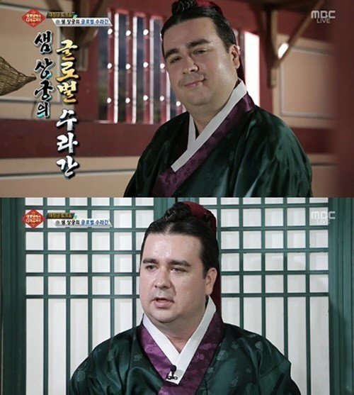 그는 “‘대장금’을 사랑하는 샘 상궁이라 하오”이라며 자신을 소개했지만 계속되는 사극 말투에 결국 “이 말투 너무 힘들다”고 불만을 토로하기도 했다.