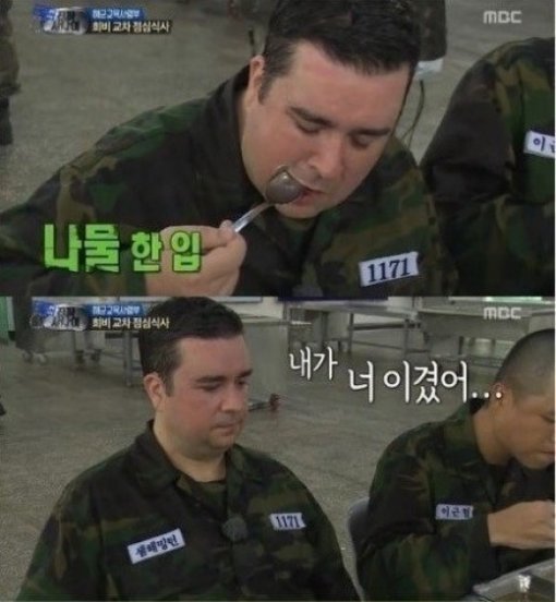 그는 병사들과 함께 밥을 먹기 전 PT 체조 등 특별훈련을 받았다. 샘 해밍턴은 “소식 하겠다”며 밥을 조금 먹었고 제육볶음도 먹지 않았다. 잔반을 많이 남겨 벌을 받기도 했지만 소식을 하겠다는 그는 약속을 지켰다.