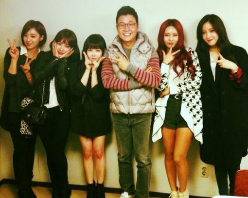 김성주는 지난 18일 자신의 트위터를 통해 "슈스케 생방송 응원와준 티아라…감사감사^^ 새 앨범 대박나라!"라는 글과 함께 한 장의 사진을 올렸다.