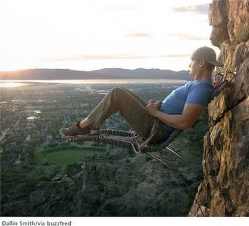 미국의 암벽 등반가이자 디자이너인 한 20대 남성은 미국 유타주 록캐년 절벽 110m에 의자를 설치했다.